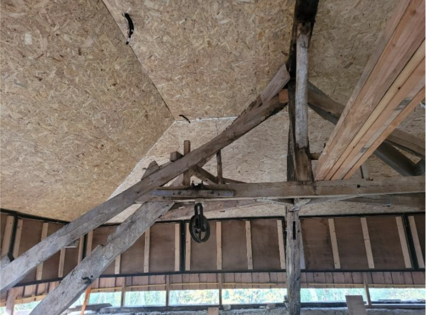 Wij hebben besloten om een en ander van de renovatie van de molen te gaan versnellen. Dat kunnen wij niet alleen dus hebben wij mensen gevraagd voor het isoleren van het dak, de kelder te betonneren, de ingang van de molen te verhogen en het hygiëne-hok af te maken. Gezien het behaalde resultaat een goede keuze van ons. Het is mooi geworden!